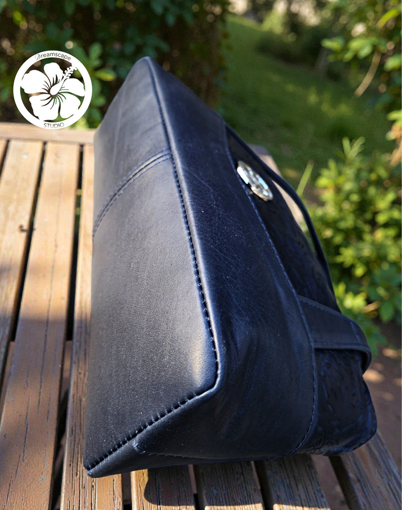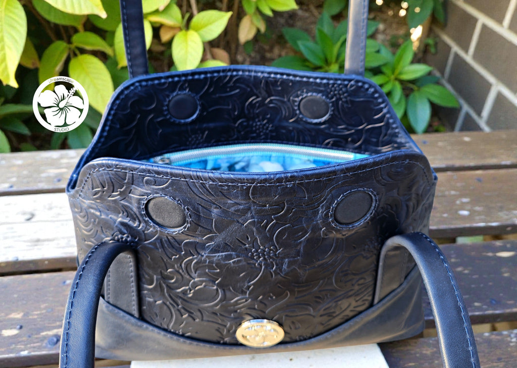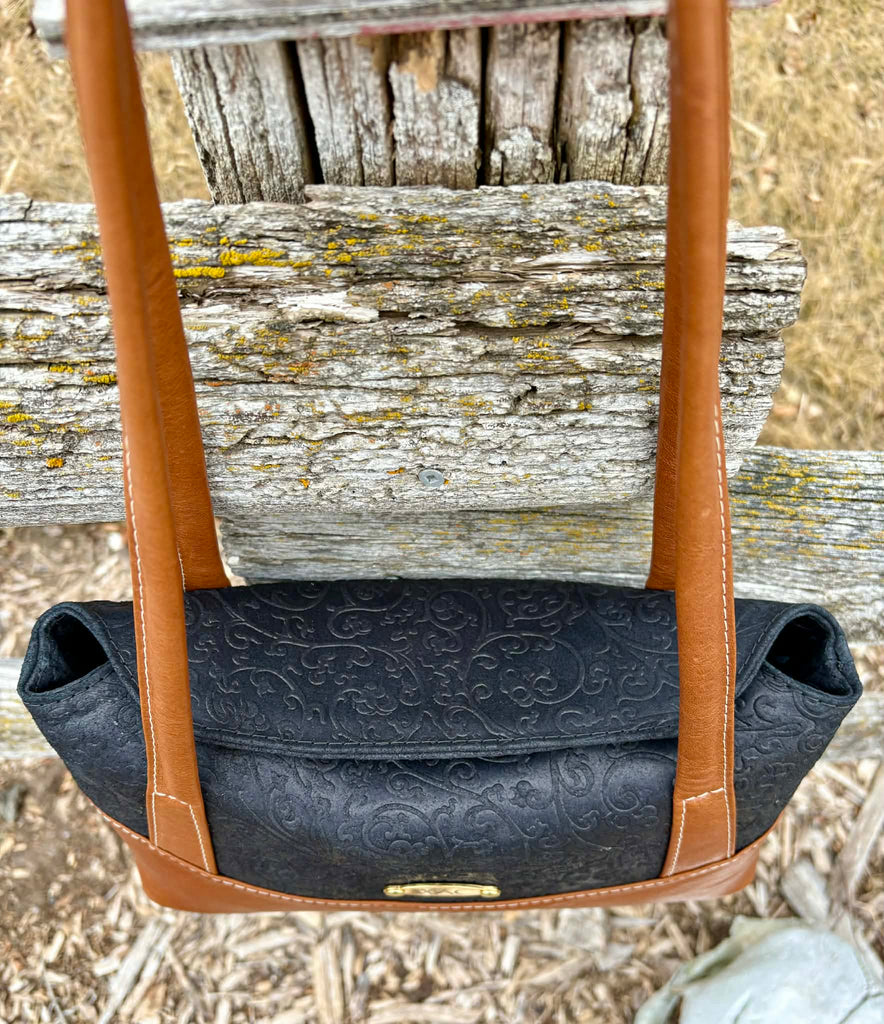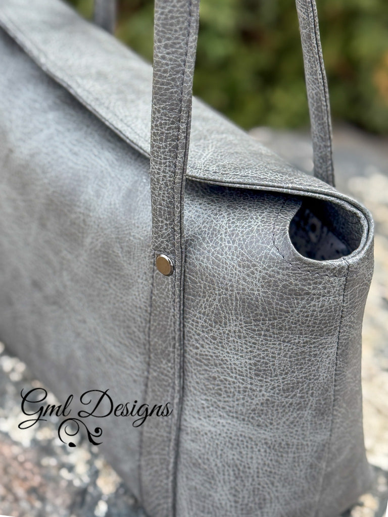 The instructions in this pattern are written for Leather or Vinyl. There are strong magnets used to secure the closure of this bag and the area around these will require edge painting.