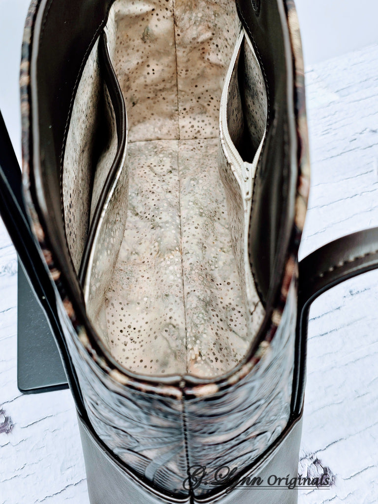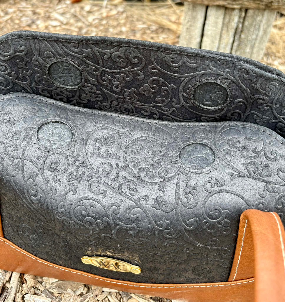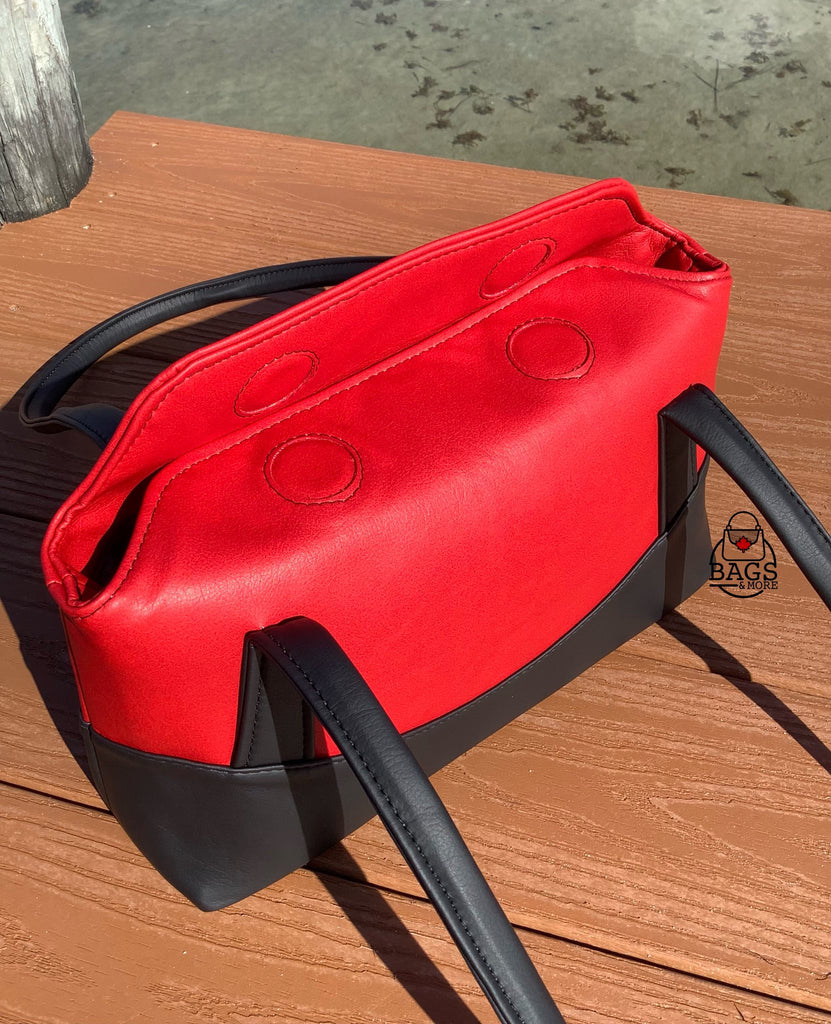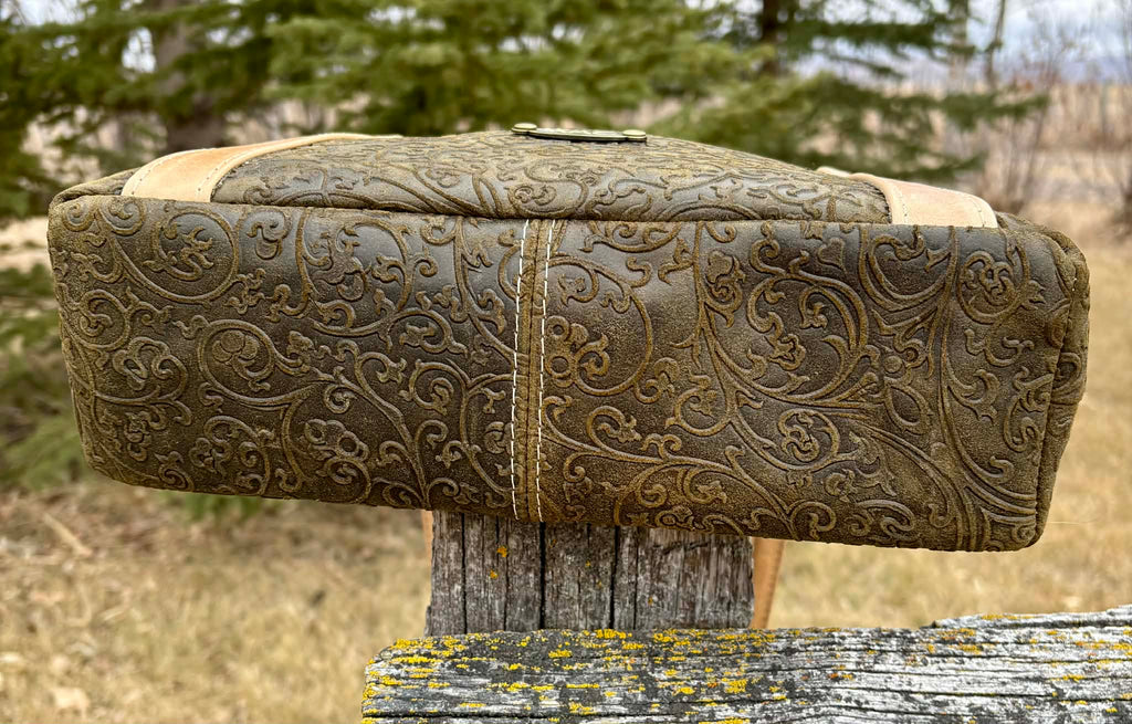 The instructions in this pattern are written for Leather or Vinyl. There are strong magnets used to secure the closure of this bag and the area around these will require edge painting.
