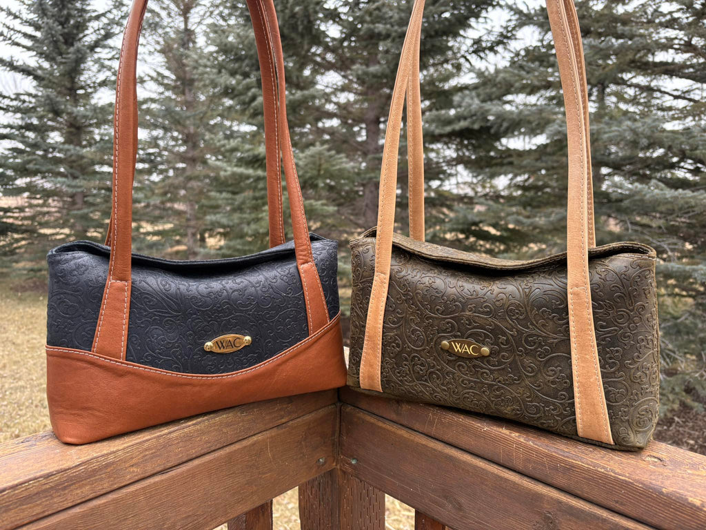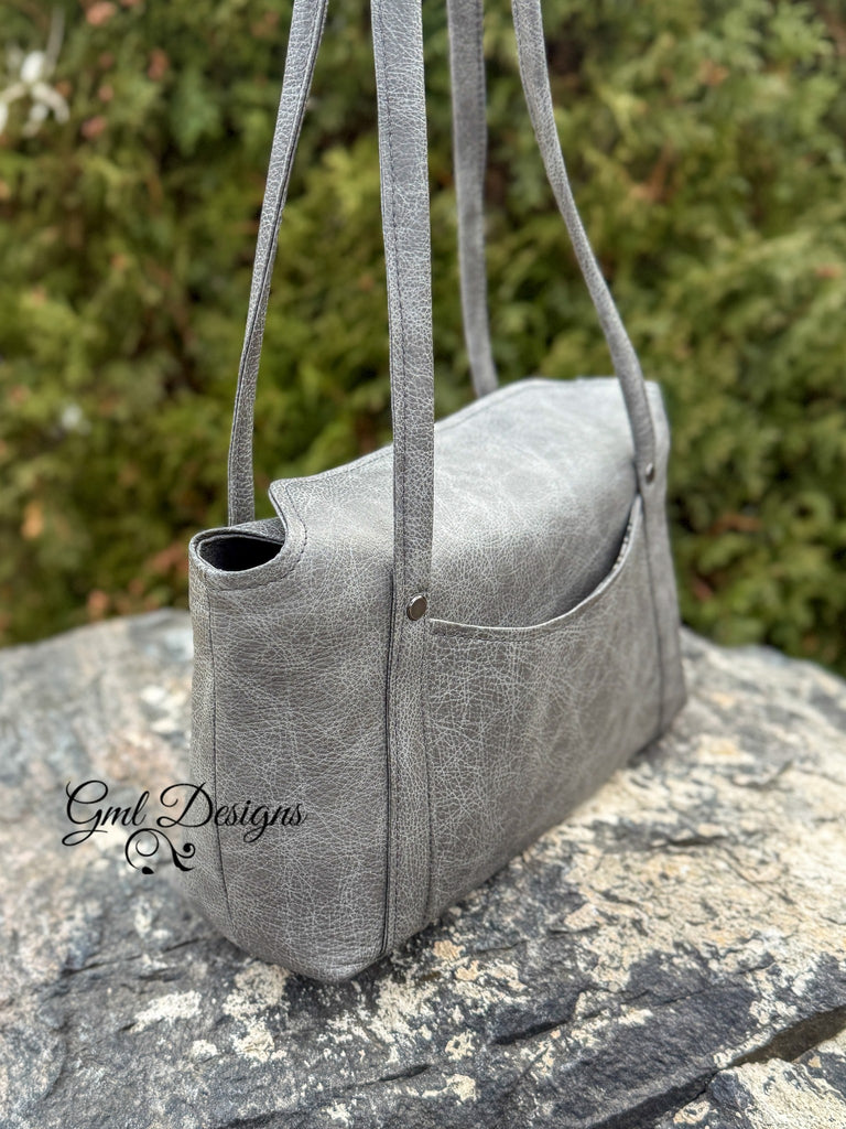 Style B of the Calista Shoulder Bag has a separate curved panel that adds