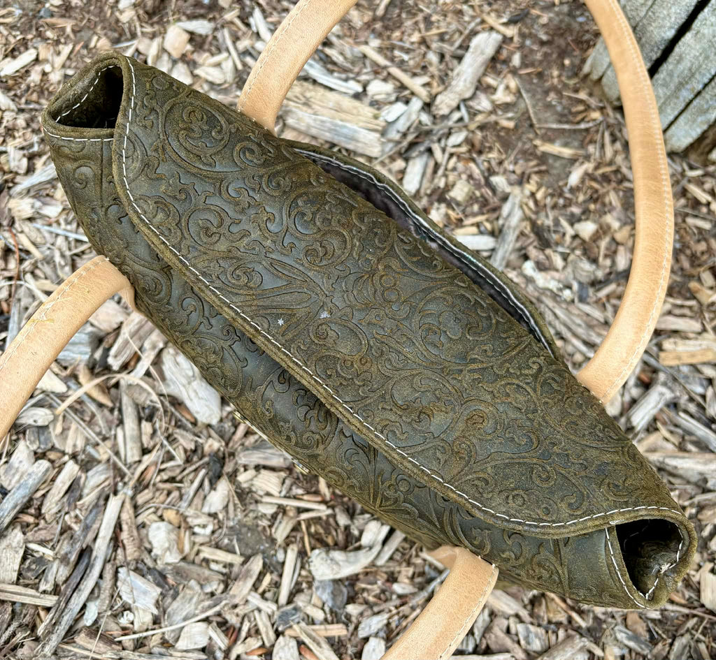 ·       Leather piece that measures 41” x 26” - 7.5 SQ FT.  (UPPER AND LOWER FRONT/BACK, BASE, STRAPS, AND INTERIOR FACING