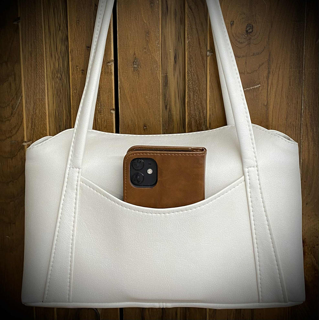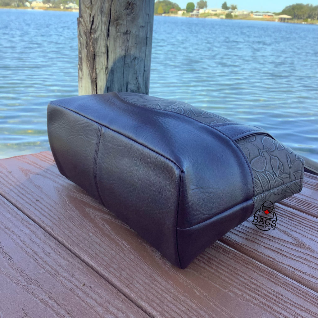 Style A of the Calista Shoulder Bag has a solid Front and Back as well as a curved